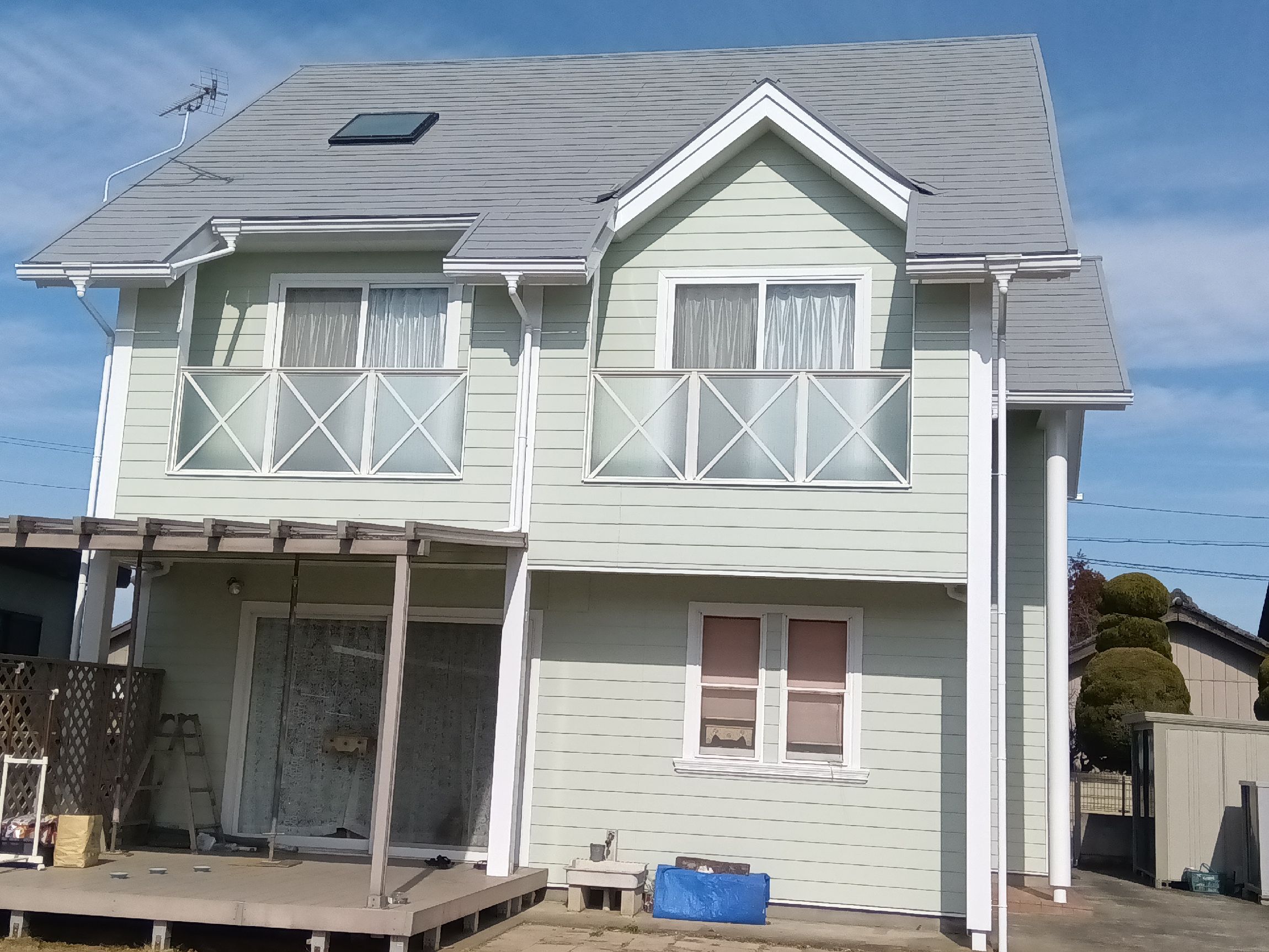 今回の工事は住宅の屋根から壁、ベランダまでとそっくり塗装させて頂きました。家の屋根及び外壁は築後年数の経過と共に劣化していきます。放っておくと建物の構造部に影響する場合もあります。ご気軽にご相談下さい。